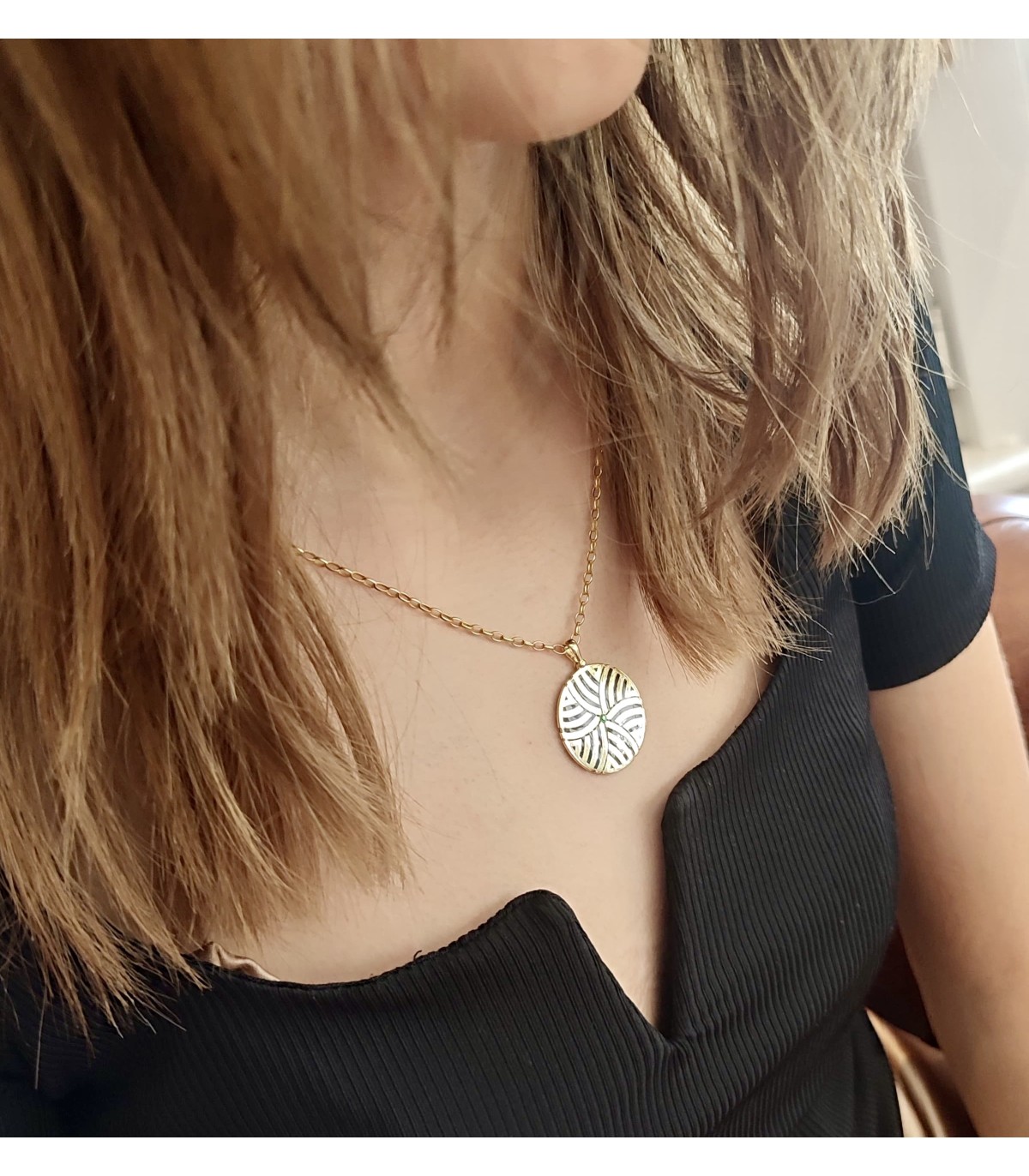 925 ayar gümüş , siyah mine ve zümrüt taş kullanılarak yapılmıştır
